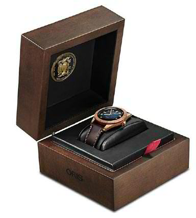 The presentation is in line with the usually impressive limited edition boxes that Oris is known for. The wood box features a US Navy Master Diver replica medal on the inside cover.
