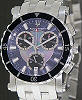 Accutron stainless steel Quartz chronograph watch from Accutron Courchevel Collection. Gorgeous blue dial with combination of Mother-of-Pearl and Guilloche texture, black sub-dials, luminous hands and markers, and date calendar. Uni-directional 0-60 rotating bezel with black ring. Black cabochon crown and lug ends. Stainless steel bracelet.