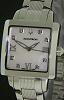 Accutron Lady`s quartz watch from Accutron Masella Collection. Stainless steel square curved case. White Mother-of-Pearl dial with 8 diamond markers and Roman numerals. Stainless steel bracelet.