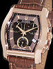 Bulova Accutron stainless steel Quartz chronograph watch from Accutron Stratford Collection. Gorgeous brown dial with light brown accents, rose gold hands and markers, and date calendar. Tonneau shaped rose gold plated case with brown leather band.