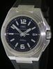 Day/Date calendar, window display. 12 hr, 30 min, 60 sec registers chronograph.