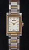 Accutron Ladies stainless steel quartz watch from Accutron Vera Cruz Collection with 18K gold bezel. Gilt color hands and markers on ivory Guilloche textured dial. Watch band is a combination of stainless steel and 18kt Gold.