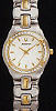 Accutron watch 28R06 from Accutron Barcelona Collection. Solid Stainless steel, very slim, satin finished case with gold plated accents and diamonds on the bezel. Swiss quartz movement. White Mother-of-Pearl dial with gilt color hands and markers. Solid Stainless steel watch bracelet with gold plated accents and center opening deployment clasp with spring release.