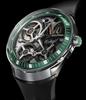 Accutron's Proprietary Electrostatic Movement. The electrostatic energy is created by 2 turbines that rotate between two electrodes affixed to the movement. The rotation is a a result of human motion. The energy is stored in an accumulator and powers two motors - second hand and hour/minute hands.