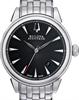 Bulova Accutron stainless steel automatic watch from Accutron Gemini Collection. Black textured dial with date calendar. Round case with sapphire crystal and bracelet.