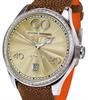 Alexander Shorokhoff Avantgarde "Lady Automatic" watch. Champagne guilloche textured watch dial. Powered by Swiss automatic ETA 2824 movement with hand engraved rotor. Stainless steel case with sapphire crystal and diamond bezel. Stingray brown leather strap.