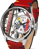 Russian avant-gardist Wassily Kandinsky. Powered by Swiss automatic ETA 2892 movement with hand engraved rotor. Black plated stainless steel square case with sapphire crystal and rounded edges. Multi-colored "avantgardistic" dial and leather strap. The back of the watch features four round glasses in red, blue and yellow (the most important colors in Avant-garde art).