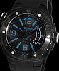 Alpina "Cote d`Azur" Extreme Diver automatic watch in "Fresh Blue". Water resistant to 1000 meters. Black PVD plated steel case with rubber strap. Black textured dial with large blue luminous markers. AL-525LBCD5FBAEV6