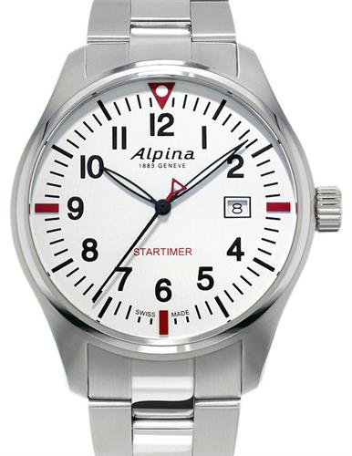 Alpina Startimer Pilot model AL-240S4S6B. Swiss quartz movement. Stainless steel case with bracelet. Sapphire crystal. White dial with black Arabic numerals, designed for Professional pilots. 100 meters water resistant.