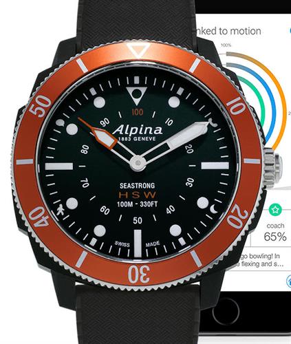 Alpina Seastrong Horological Smartwatch. Model AL-282LBO4V6. All function adjustable via crown: