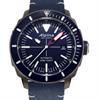 Swiss made Alpina "SeaStrong" diver automatic watch model AL-525LNN4TV6 in 44mm titanium coated stainless steel case with blue dial and bezel. Comes on blue leather band. Water resistant to 300 meters