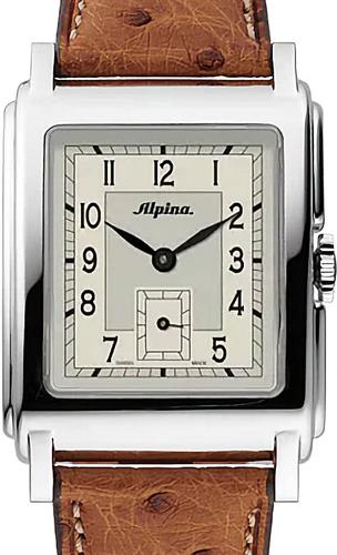 Alpina Alpiner Heritage model AL-530SAC3C6. Swiss automatic movement. Stainless steel tank style case with tan ostrich leather strap. Sapphire crystal. Ivory dial with small seconds sub-dial. 30 meters water resistant.