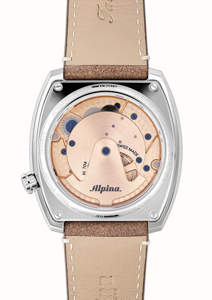 Swiss made Mechanical Automatic (Powered by wrist motion). 26 jewels. Alpina Cal. AL-709.