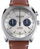 Alpina Startimer Pilot Heritage Chronograph model AL-727SS4H6. Swiss automatic chronograph movement. Stainless steel case with leather strap. Sapphire crystal. Silver color dial with tachymeter scale and grey sub-dials. 100 meters water resistant.