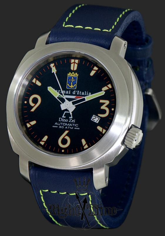 Anonimo Firenze Dino Zei Marina d`Italia colorful, very much Italian looking sport watch. Limited Edition of 199 pieces. Sand blasted and satin finish 316L stainless steel case. Blue dial with luminous numerals. Blue "Kodiak" style leather strap.