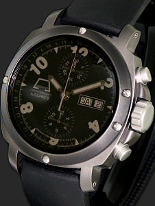 Italian made Anonimo Firenze Opera Meccana Cronoscopio Mark II NERO Drass, antique Sepia looking wristwatch powered by Valjoux 7750 day/date automatic chronograph movement. Limited Edition of 250 pieces. All black, sandblasted Drass finish stainless steel case and bezel. Black color dial with luminous numerals behind smokey shade sapphire crystal. Black rubber band with deployant clasp