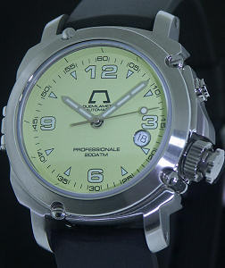 Anonimo Professionale model 6001. Water resistant to 200atm. Operated by ETA 2824 based movement. Stainless steel case with automatic helium expulsion valve, extra thick sapphire crystal, black rubber band