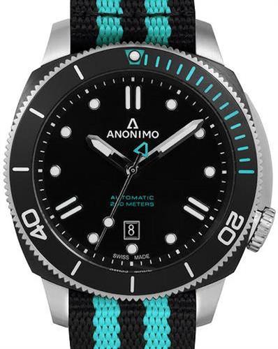 Anonimo Nautilo Leopard Racing model AM-1002.03.001.A11 powered by Sellita SW200-1 self-winding mechanical movement. Limited Edition of 97 pieces. Black DLC plated and steel case. Black bezel with blue 0-15 sector. Black dial with date calendar, Superluminova hands and markers. Black and blue NATO style strap. 200 meters water resistant