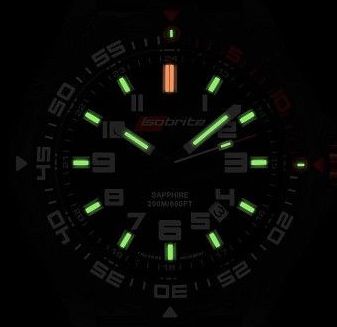 Uni-Directional rotating, ratcheted, 0-60 Elapsed-Time. Tritium tube inside "0" minute marks.