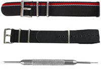 Composite material (plastic or silicone or polyurethane). Comes with extra nylon bands and a spring bar pin tool.