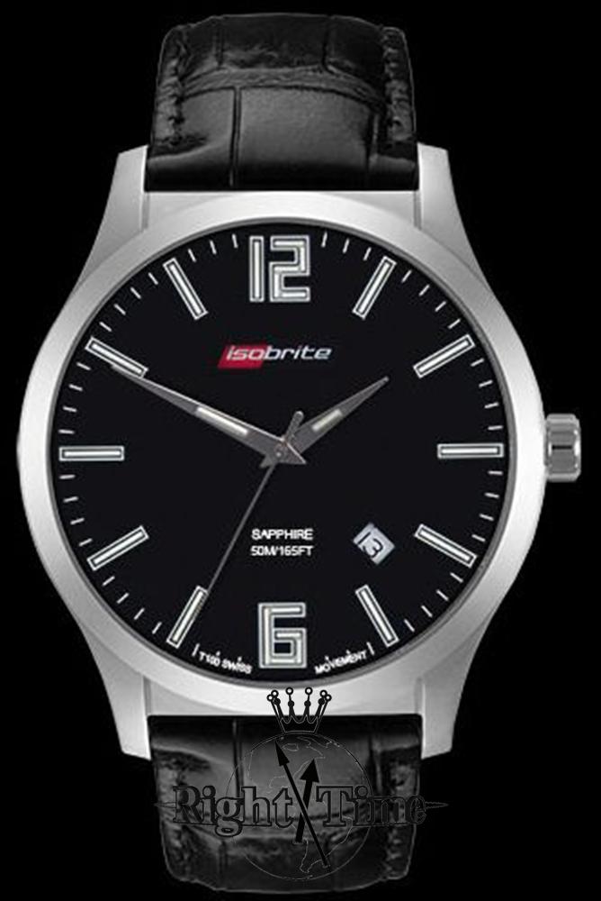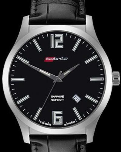 IsoBrite by ArmourLight "Grand Slimline" collection model ISO902 with black color dial and T100(brightest) micro-gas tube (by MB-Microtec H3) illumination on hands and numerals in a slimmest 8.5mm and 42mm diameter polished steel case on alligator style leather band