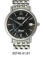 Atlantic stainless steel Automatic wrist watch from Atlantic Seacrest Collection with Swiss ETA 2824-2 Automatic movement, date calendar, sapphire crystal, polished stainless steel watch bracelet and black color dial.