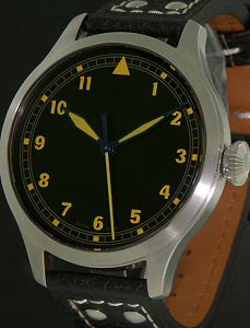 Manual wind Azimuth Militare Bombarder V manual wind model with yellow aged super-luminova Arabic markers, featuring an old production Fontainemellon movement from the 1960`s. Limited Edition of 500 pieces