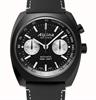 Day/Date calendar, window display. 12 hr, 30 min, 60 sec registers chronograph. Accumulated measurement.