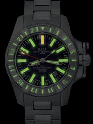 BALL Engineer Hydrocarbon GMT II model DG1016A-S1J-BK with automatic ETA movement, stainless steel case, sapphire crystal, patented crown protection system, and micro gas tubes for night reading capability.