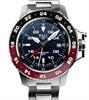 BALL Engineer Hydrocarbon AeroGMT II watch with automatic ETA COSC movement, stainless steel case, sapphire crystal, patented crown protection system, and micro gas tubes for night reading capability. "Coke style" black and red bezel. Blue dial. Steel bracelet.