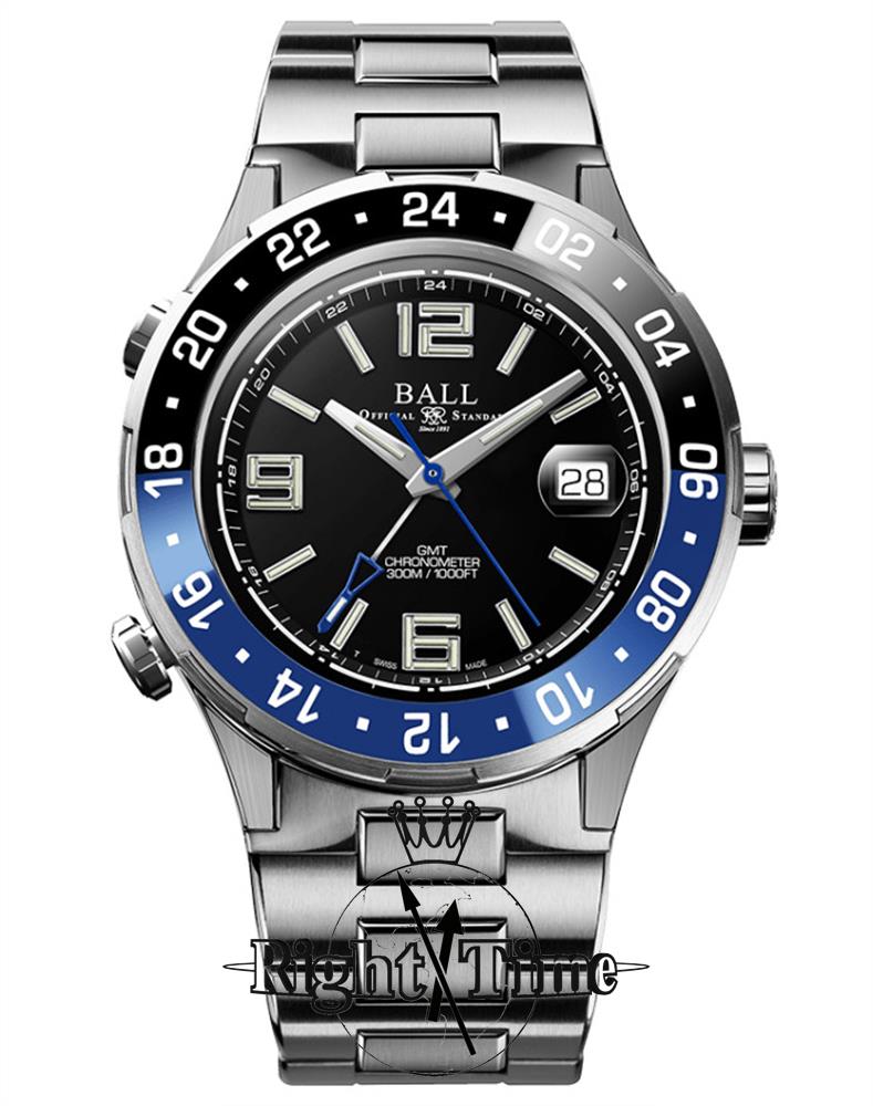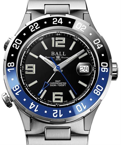 Ball Roadmaster series model DG3038A-S4C-BK. Limited edition of 1000 pieces Worldwide. Titanium case with combination titanium/steel bracelet. Black dial with tritium filled Arabic numerals and markers. Duo-directional ratcheted bezel with blue/black 24 hour ceramic insert. Steel tone tritium filled hands with blue GMT hand. Ball automatic caliber BALL RR1204-C movement with date and GMT function. Certified COSC Chronometer. Sapphire crystal.