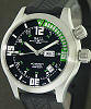 Inner rotating 60 minute, operated by separate crown. Green color accents.