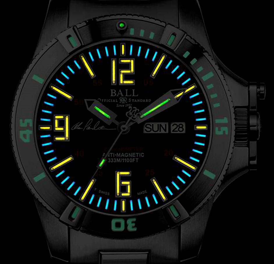 Ball Engineer Hydrocarbon Spacemaster Captain Poindexter Limited Edition model with black dial. Automatic ETA movement with day/date, stainless steel case, sapphire crystal, patented crown protection system, and micro gas tubes for night reading capability. Certified chronometer. Comes with steel bracelet and rubber band. Limited to 1000 pieces.