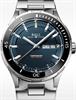 BALL TimeTrekker chronometer powered by automatic movement with day/date calendar. Patented Amortiser anti-shock system. Anti-magnetic to 4,800A/m. 200 meters water resistant. Stainless steel case and bracelet, sapphire crystal. 14 micro gas tubes for night reading capability. Blue dial.