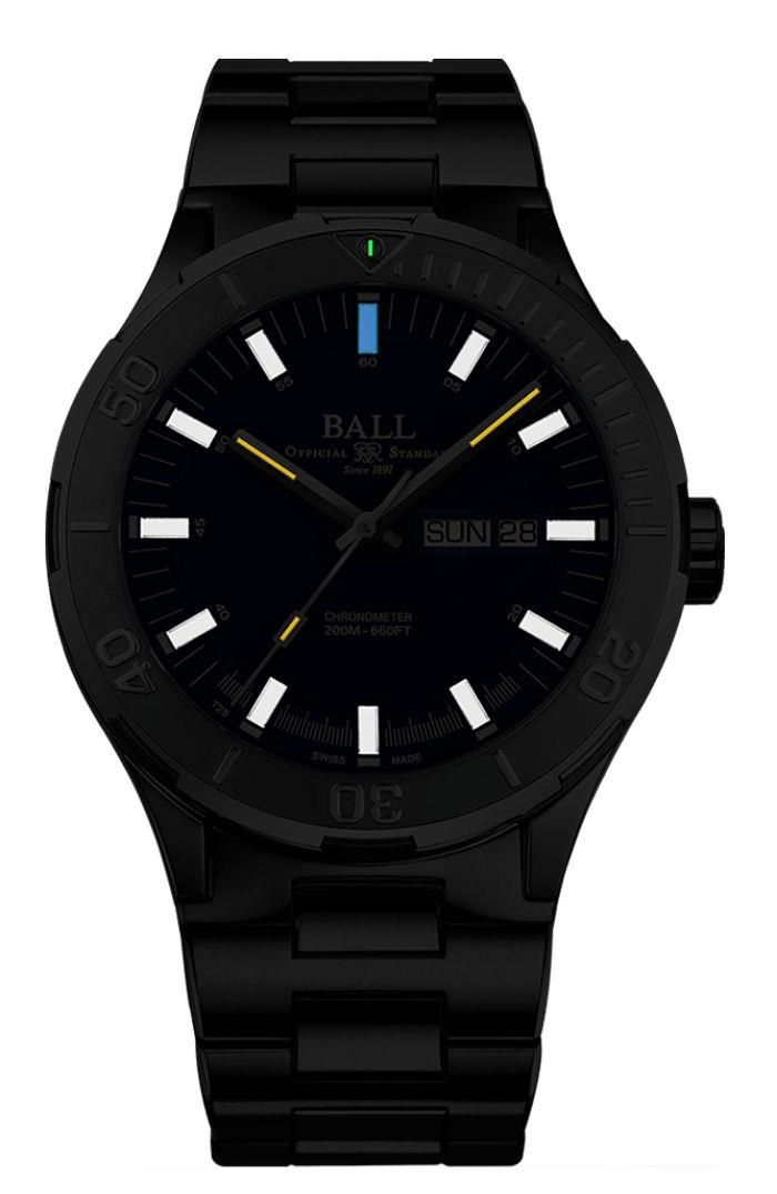 Ball Roadmaster Skipper model DM3050B-S7CJ-BE. Swiss made automatic caliber BALL RR1102-C movement. Certified COSC chronometer. Stainless steel case and bracelet. Ratcheted uni-directional bezel with 60 minute scale. Blue dial with tritium filled hands and markers. Water resistant to 200 meters. Sapphire crystal.
