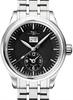 BALL Trainmaster First Flight watch with special design platform based on automatic ETA movement, second time zone indication, stainless steel case, sapphire crystal, and micro gas tubes for night reading capability. Black dial.