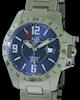 Factory model GM2098C-SCAJ-BE. Ball Engineer Hydrocarbon Magnate. Checkered texture blue dial with magnified date. Bright red hand for a second time zone. Solid stainless steel case with Ball patented clasp. 28 micro gas tubes.