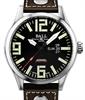 Ball Engineer Master II Aviator model NM1080C-L14A-BK. Swiss ETA 2836-2 automatic movement with double calendar. Black dial with 66 (super bright at night) micro tubes filled with 3H luminous gas. Robust steel 46mm case with brown leather strap.