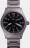BALL Fireman watch with automatic ETA movement, stainless steel case and bracelet, sapphire crystal, micro gas tubes for night reading capability, orange color markers.