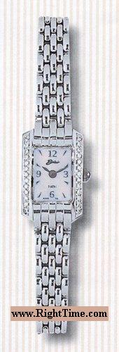 Belair ladies wrist watch from Belair 14 Karat Gold Collection. Swiss quartz movement, 14kt solid white gold rectangular case with diamonds, Mother-of-pearl dial, 14kt white gold watch band with adjustable links.