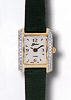 Belair ladies wrist watch from Belair 14 Karat Gold Collection. Swiss quartz movement, 14kt solid yellow gold case with hand-set diamonds on the bezel, Mother-of-pearl dial and leather watch band.