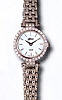 Belair ladies wrist watch from Belair 14 Karat Gold Collection. Swiss quartz movement, 14kt solid white gold round case with hand-set diamonds on the bezel, Mother-of-pearl dial, 14kt white gold watch band.