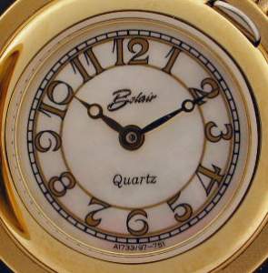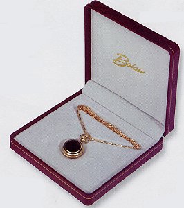 Belair stainless steel pendant watch from Belair Pocket/Pendant Watch Collection. Swiss ETA quartz movement, stainless steel hunter style case, Mother-of-Pearl textured dial with Arabic numerals. Comes with 24" chain and a box.