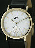 Belair ultra slim quartz watch with white color dial, small seconds platform and gold plated stainless steel case