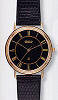 Belair Fashion Avenue Collection. Large size watch. Gold plated stainless steel watch with quartz movement, black dial with Roman numerals and leather watch band
