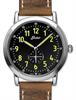 Belair Men`s wrist watch model A4186W/S-BLK/BRNLK. Quartz movement, steel round case, black color dial with yellow Arabic numerals, sapphire crystal, and brown leather band.