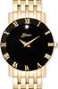 Belair A4213 gold plated stainless steel wrist watch from Belair Collection with quartz movement, sapphire crystal, black color dial with gold color hands and Roman numerals. Gold plated steel bracelet
