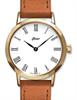 Belair Ladies`s wrist watch model A4220Y/S-RM/TN. Quartz movement, 30mm stainless steel yellow gold plated round case, white color dial with Roman numerals, sapphire crystal, and brown leather band.