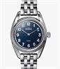 Belair stainless steel wrist watch from Belair Cosmopolitan Collection. Quartz movement, tank style polished case, white color dial with small seconds sub-dial, sapphire crystal, polished stainless steel watch bracelet with center opening deployment clasp and spring release