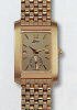 Belair gold plated stainless steel wrist watch from Belair Cosmopolitan Collection. Quartz movement, tank style polished case, champagne color dial with small seconds sub-dial, gold plated polished stainless steel watch bracelet with center opening deployment clasp and spring release